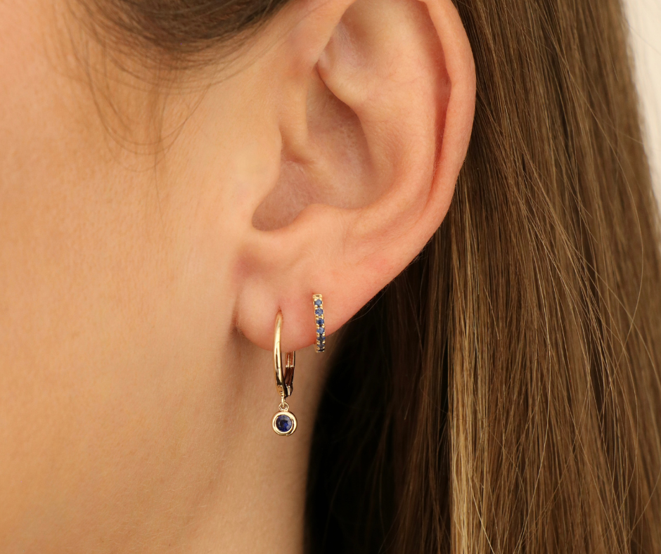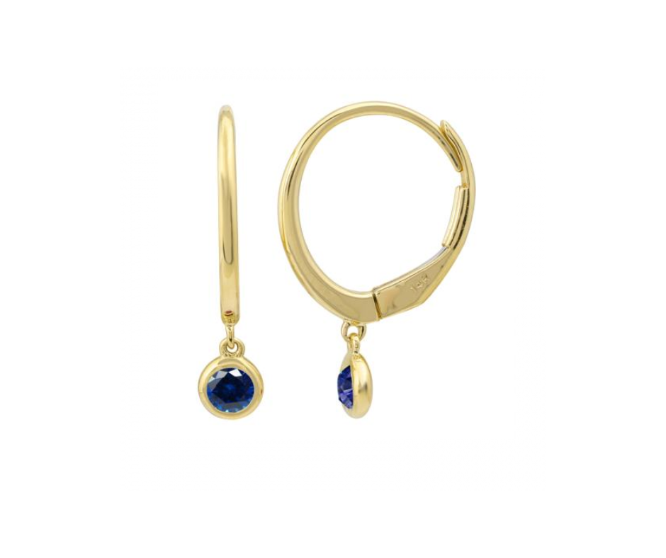 Sapphire Bezel Huggie Drop Earrings