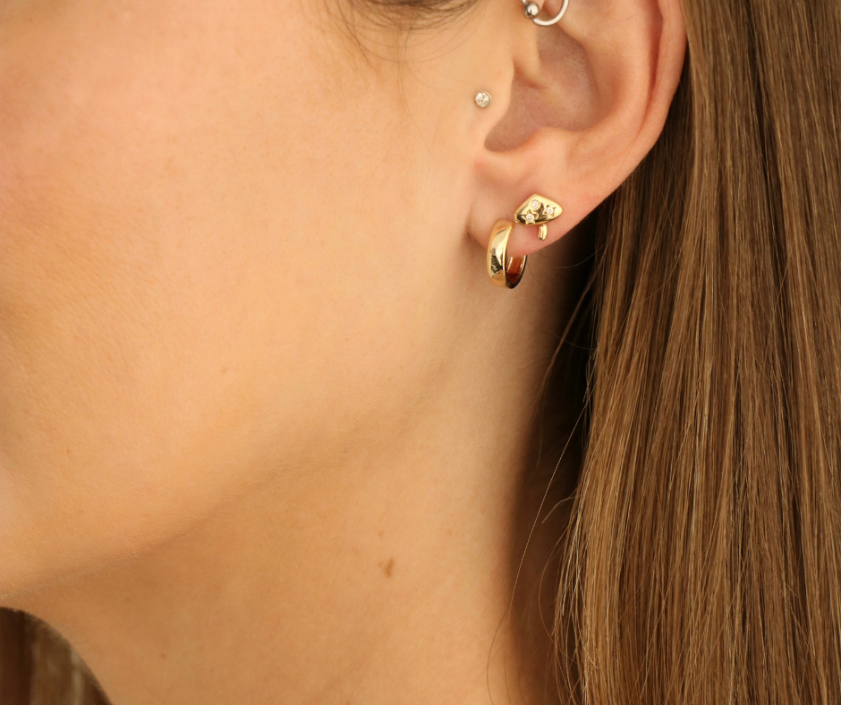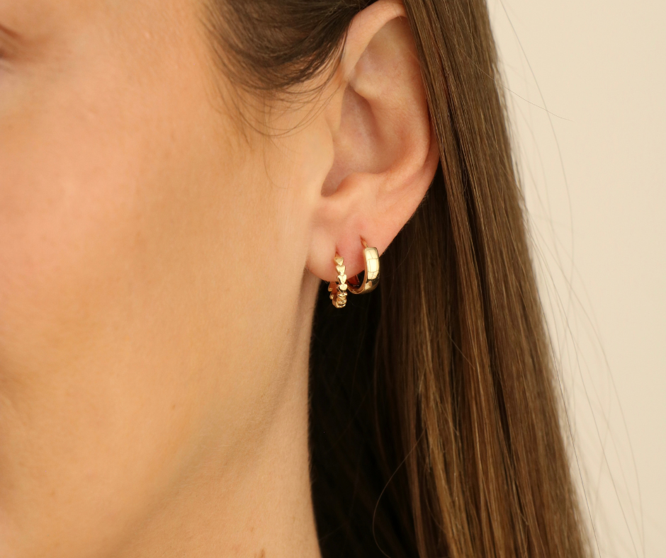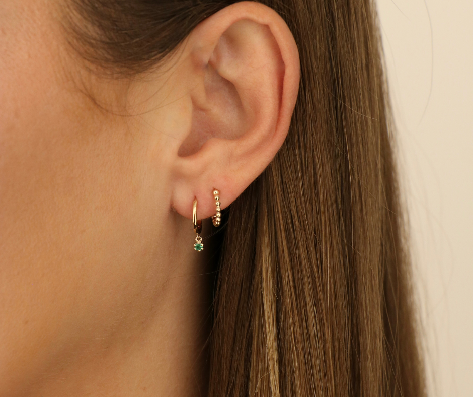 Blue Sapphire Huggie Hoop Earrings I 9mm